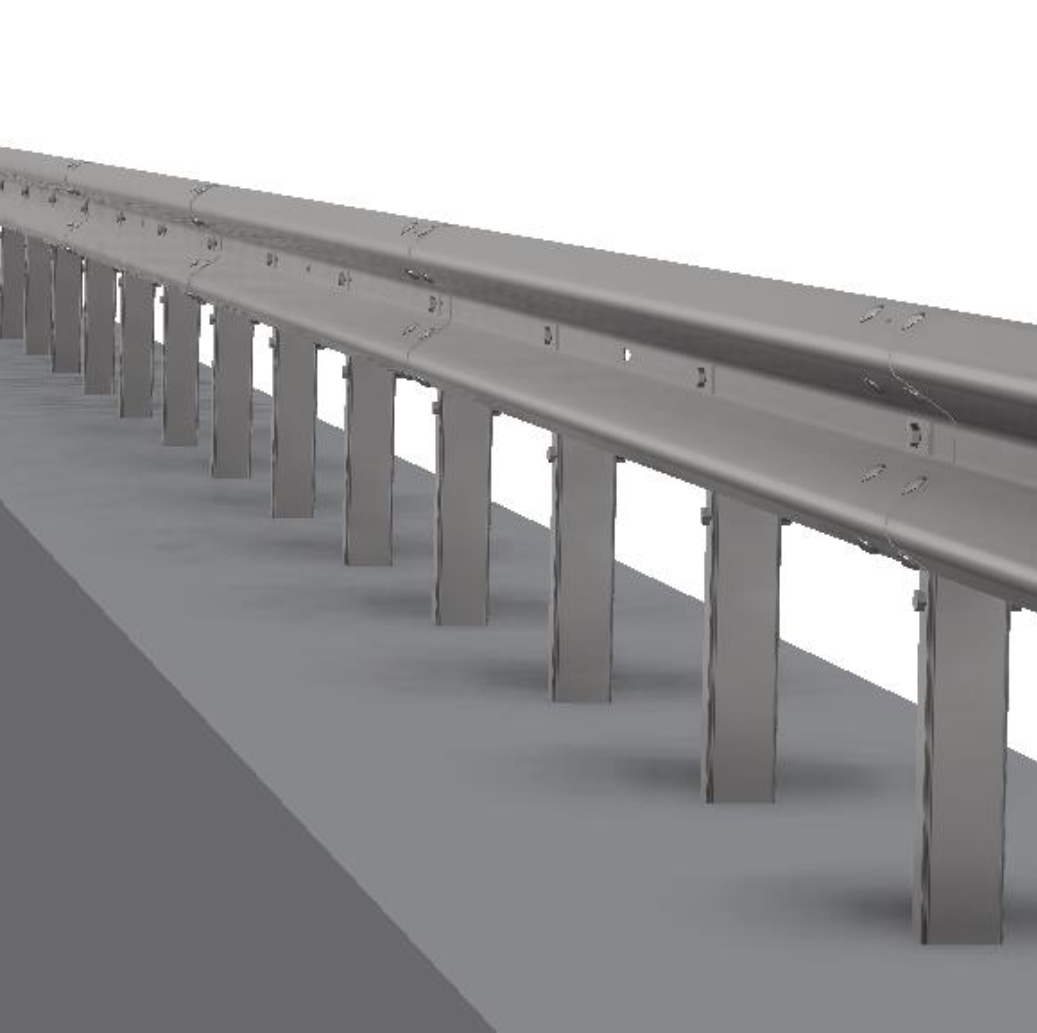 Safety barrier with Aprofile fixed at C100 post installed in soil.