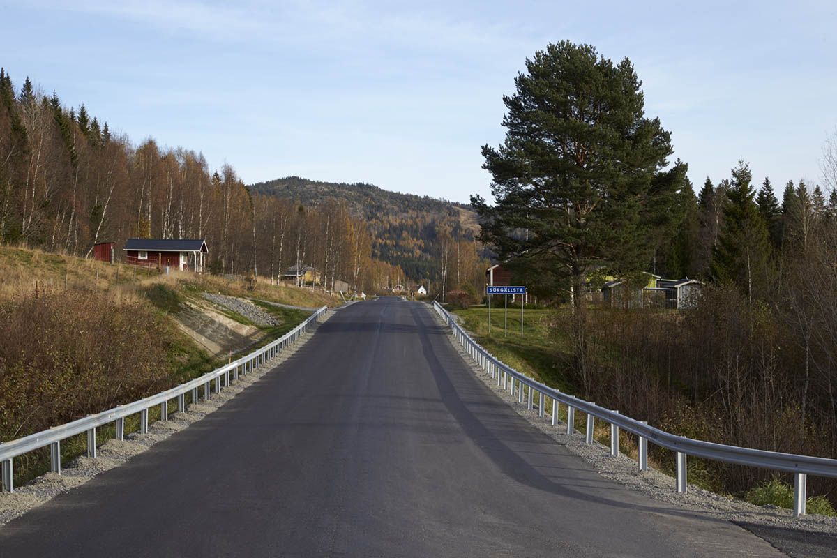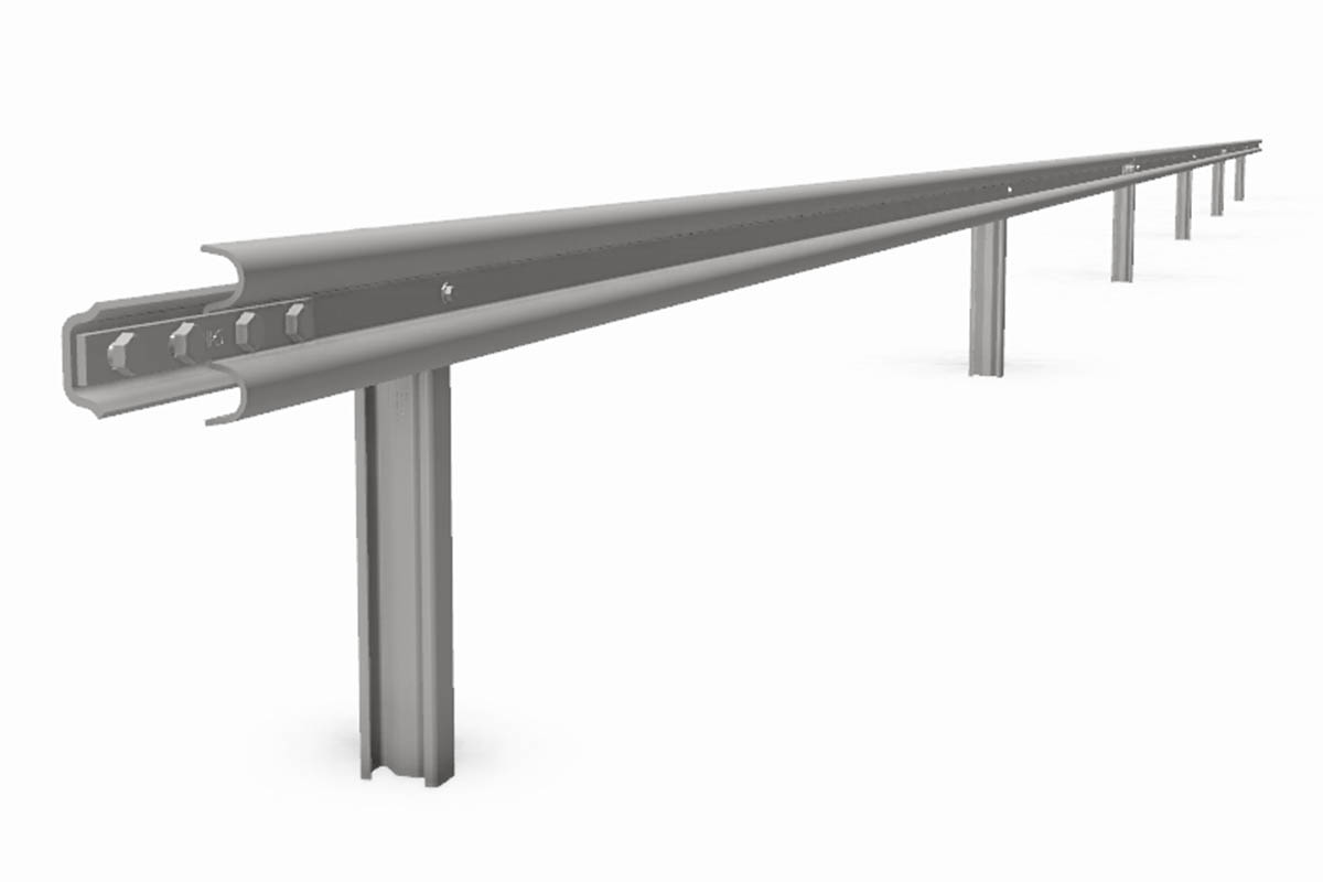 Safety barrier with K‑profile fixed at sigma post installed in soil.